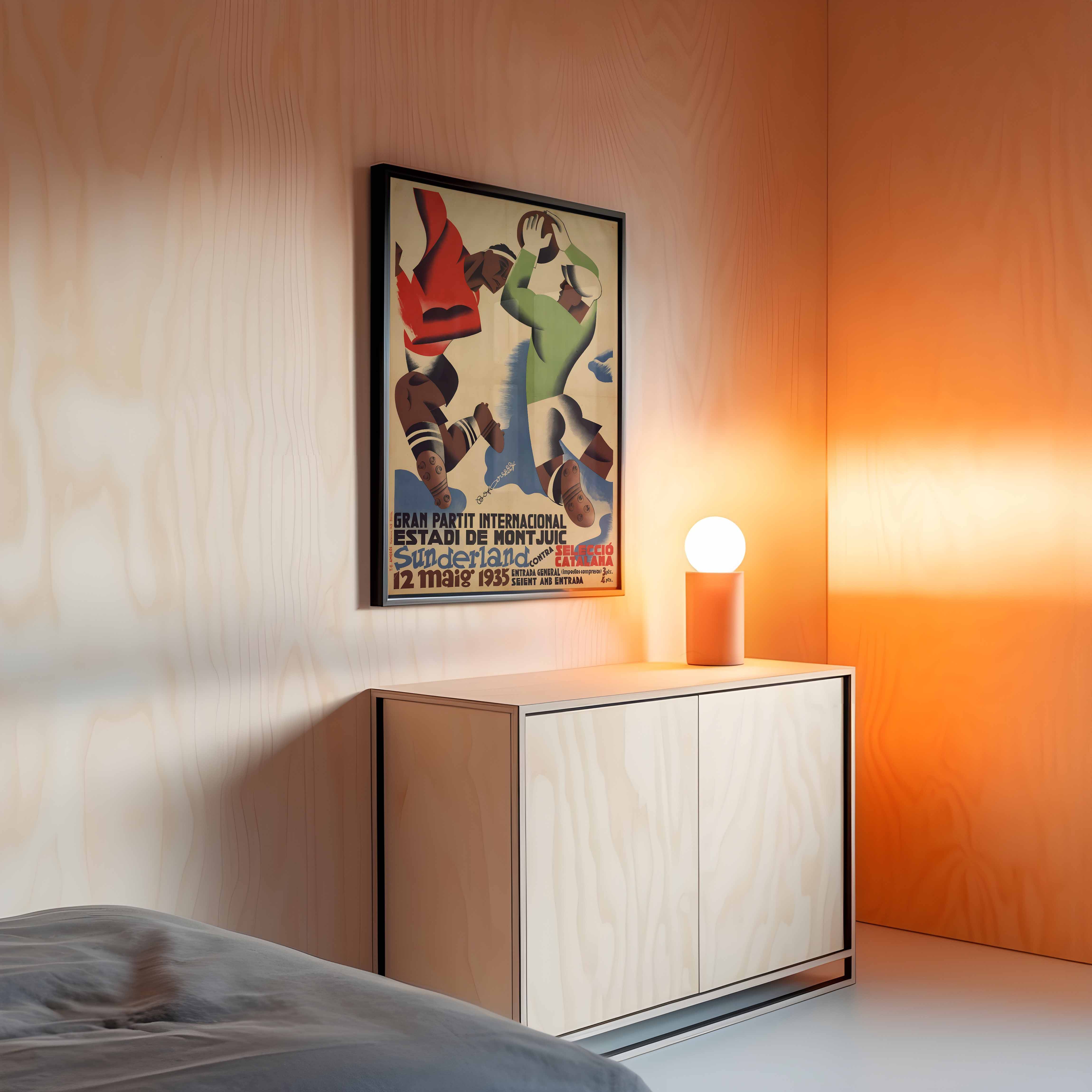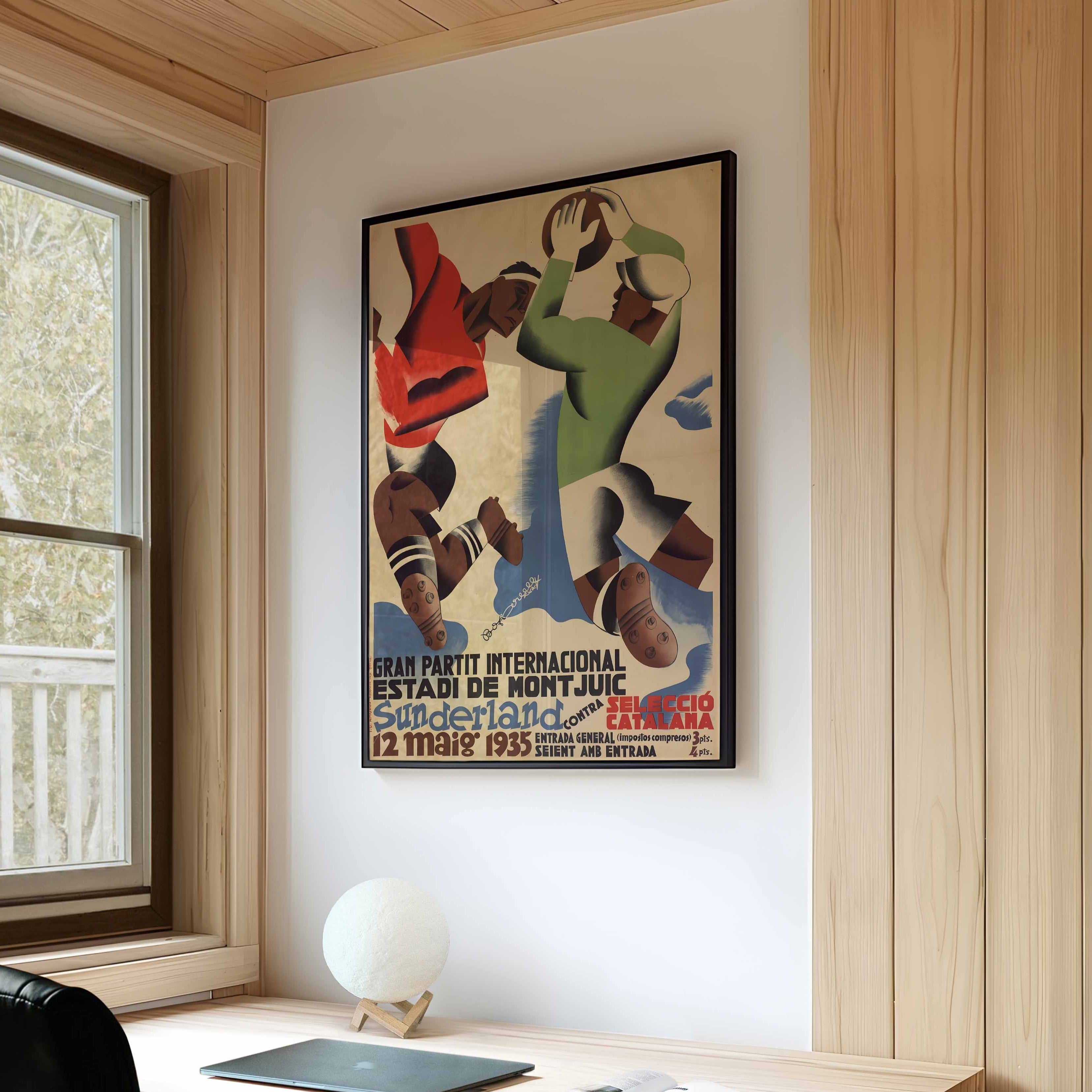 This poster advertises a significant sporting event during a pivotal era in Spanish and European history. The match featured Sunderland, then one of England's most formidable football clubs, against the Catalan national selection at the recently constructed Montjuïc Stadium in Barcelona. The stadium had been built for the 1929 International Exposition and would later host the 1992 Olympic Games. This friendly international took place during a politically tense period, just one year before the outbreak of the Spanish Civil War, when Catalonia's distinct cultural identity was particularly significant. The match represents the region's sporting aspirations and international connections during the Second Spanish Republic (1931-1939).